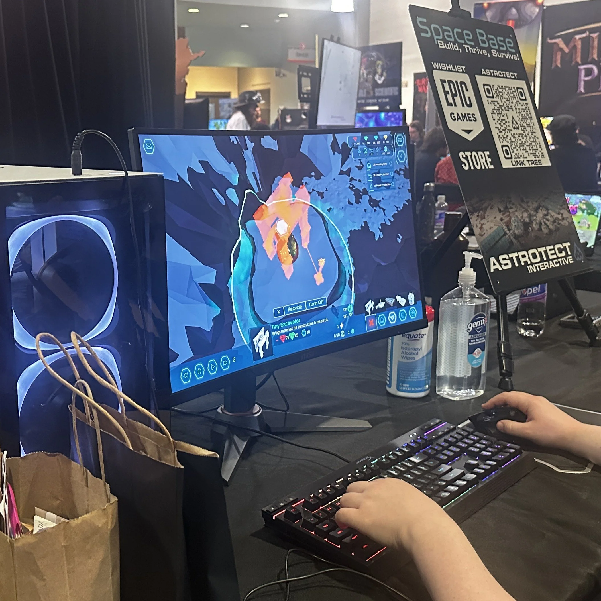 Space Base is a city builder simulation game by Astrotect Interactive, where the player is tasked with building a colony on an unmanned planet. When I first came across Space Base, I noticed convention-goers fully immersed in this space-themed game, carefully managing resources to expand their settlements. It immediately caught my interest—I knew this was a game I had to try for myself.