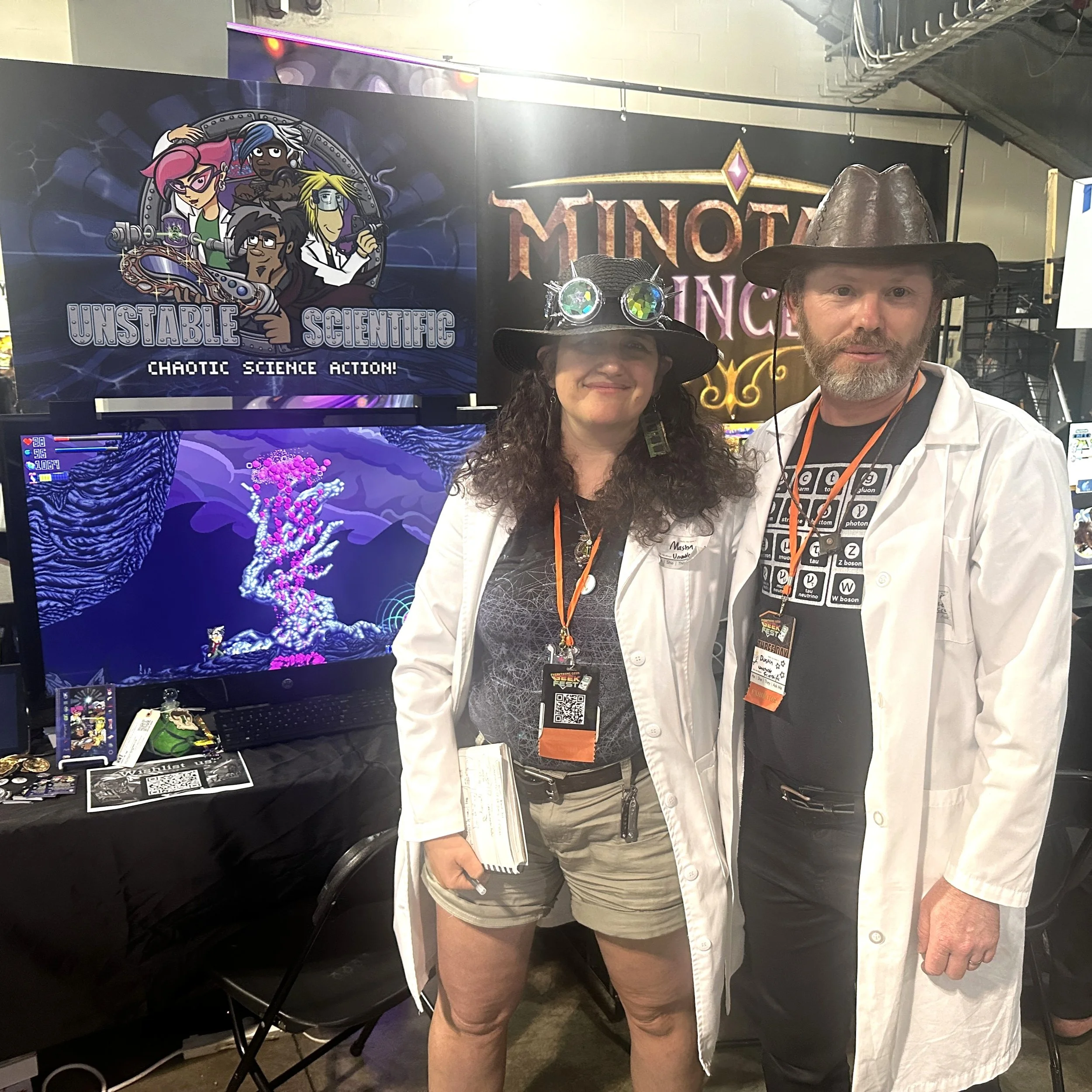 Dustin: My name is Dustin, and I'm working on a game called Unstable Scientific. We've been working on this for what, like seven or eight years. At this point, we really only started getting serious at COVID because of lockdowns. And I'm the programmer, and she's the artist, level designer, sound designer, and most of the other things, except for music.